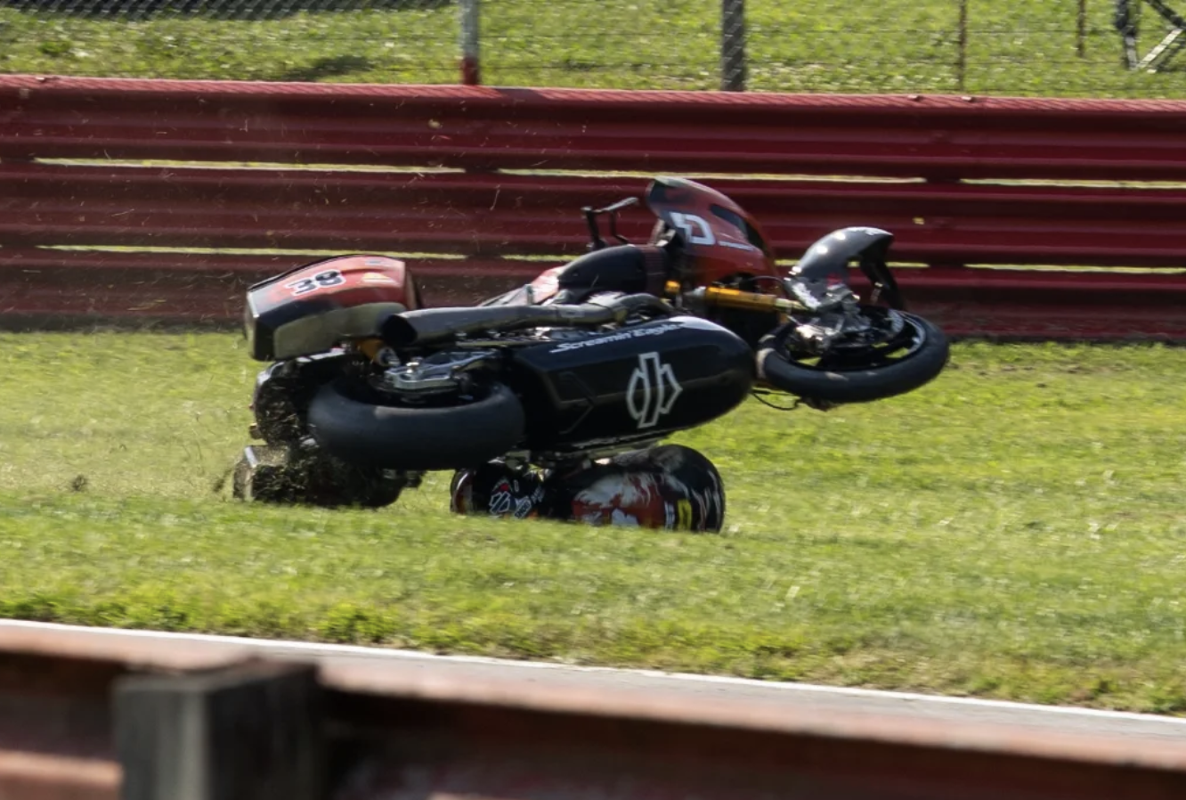 I checked in with Smith this past Friday, and he said, “All OK, thank you. I’m in one piece and back home in Monaco. Seems I have cracks in six ribs, but I’m pretty sure we are going to be all OK for Austin (Circuit of The Americas in Texas) and New Jersey (Motorsports Park, the final two rounds of the 2025 Mission King Of The Baggers Championship). Mansfield hospital looked after me good and thoroughly checked me through with a CT scan and 2 MRIs. So, all set.”