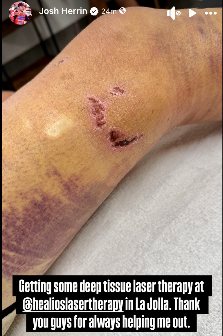 When I checked on Herrin last week, he said, “I’m good. Just pissed. I need time for my leg to heal. Nothing else I can do for it. A lot of people don’t know what happened, and some are assuming I caused the accident, which I didn’t.”