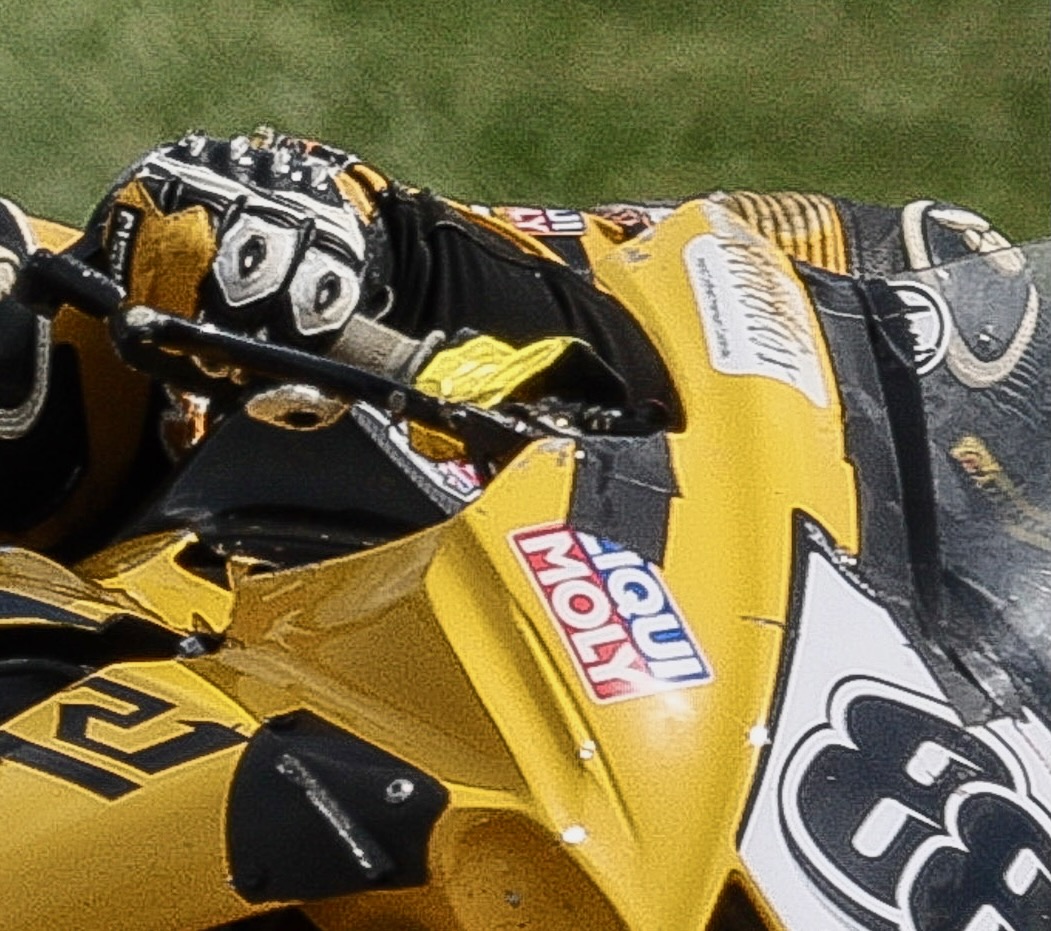The flattened exhaust silencer was removed in favor of a new one that would more efficiently extract spent combustibles from the engine. The screaming yellow zonker also lost one of its aerodynamic wings, and the handlebar controls were pretty much FUBAR, including the front brake master cylinder and the buttons used to actuate and control various electronic controls and devices.