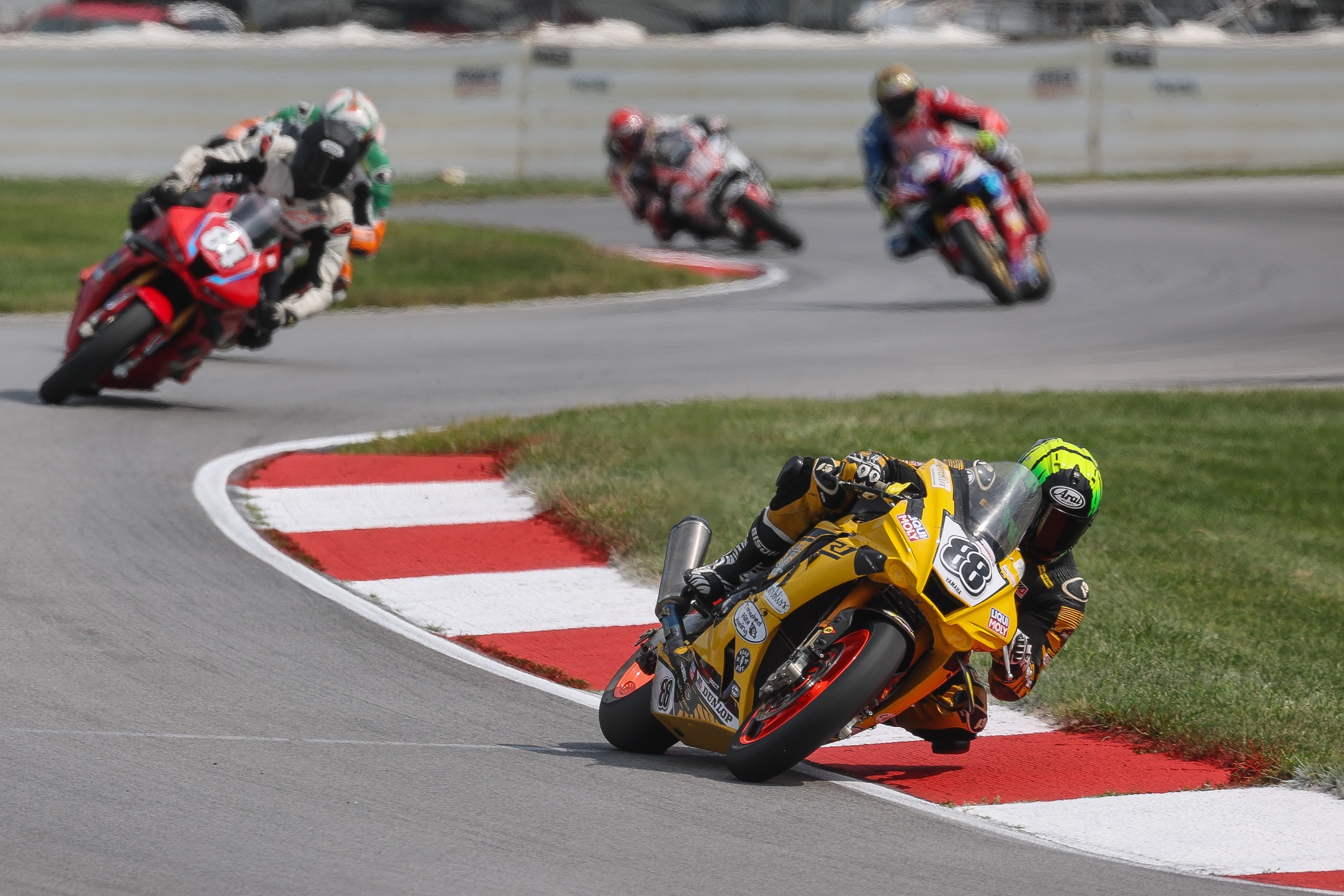 Motovation Supersport rider PJ Jacobsen repeatedly lowered the class lap record during pretty much every session in which he was aboard his Rahal Ducati Moto w/EXPEL Panigale V2. Saturday was a banner day for the New Yorker as he set a new lap record of 1:26.715 in the morning’s Qualifying 2 session. Then, in the afternoon, he did a fastest lap of 1:26.898 during Supersport race one, which was a new race lap record for MotoAmerica’s middleweight maulers.
