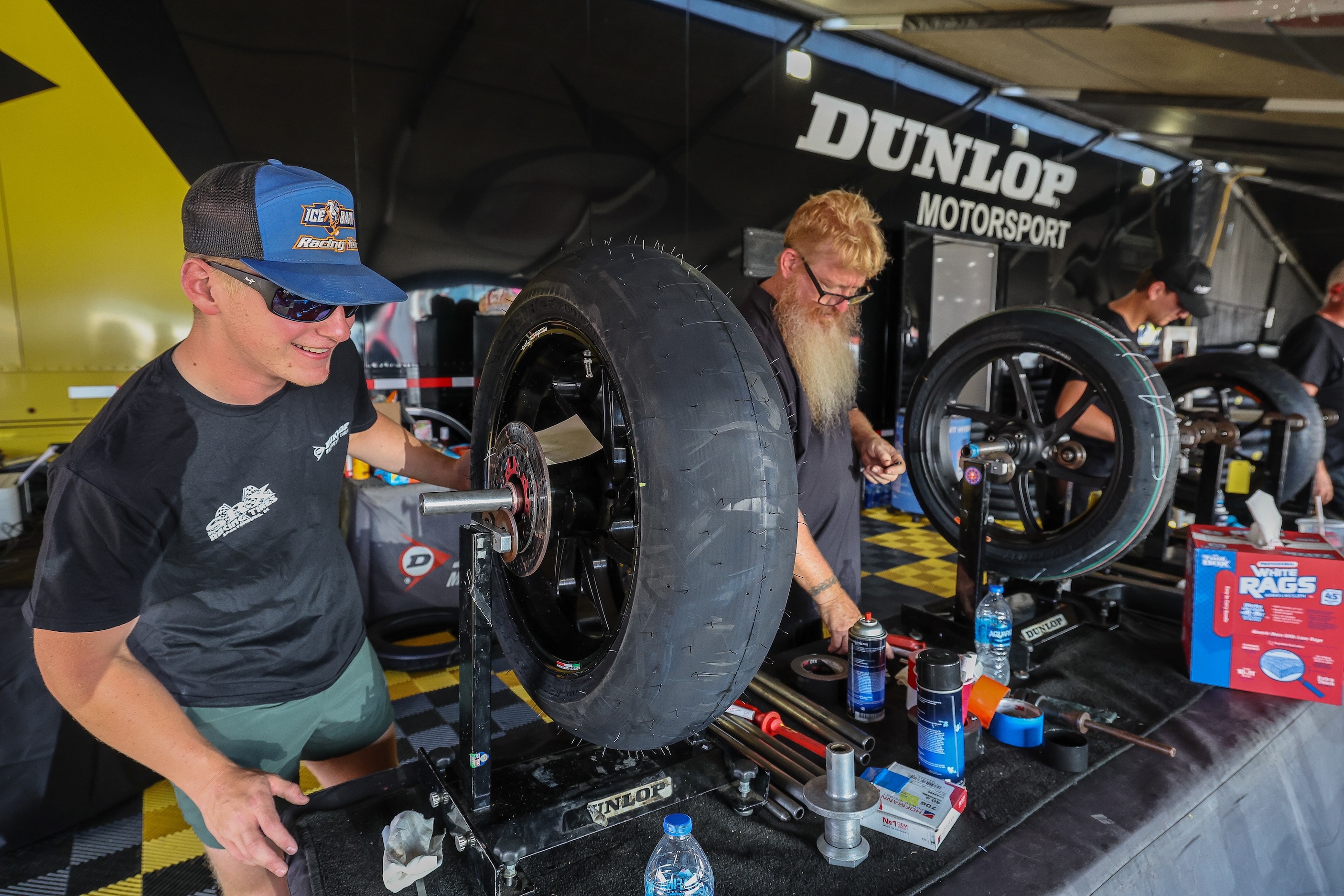 Carmel, Indiana’s Solly Mervis is really getting the most from his MotoAmerica experience. The Ice Barn Racing Talent Cup rider was in attendance at Mid-Ohio even though he wasn’t racing. Instead, the Rose-Hulman Institite of Technology engineering and physics student did a weekend internship with Dunlop. Mervis joined Dunlop’s tire crew and helped balance tires for the teams and riders while getting an insider’s perspective on everything that goes on under the big, yellow-and-black paddock awning.
