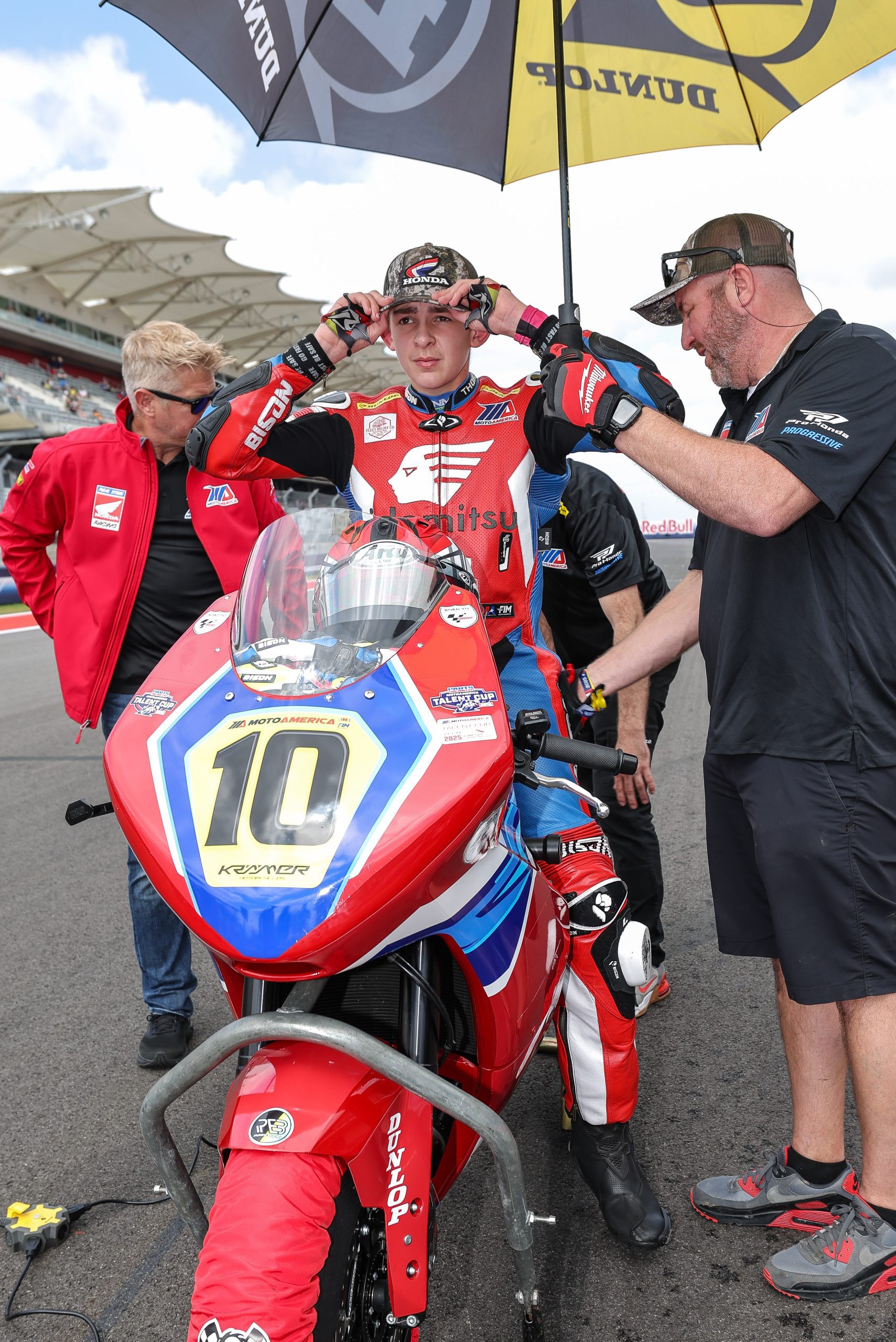 Now, you would think a rider who lives that close to Mid-Ohio and whose team is managed by the lead instructor for Mid-Ohio’s motorcycle performance school would get all the track time he could ever want or need at the 2.4-mile, 15-turn circuit. Not so for Fraley, unfortunately. Since he’s only 14, he’s not allowed on the track despite the fact that a few of his older competitors have recently tested at Mid-Ohio.