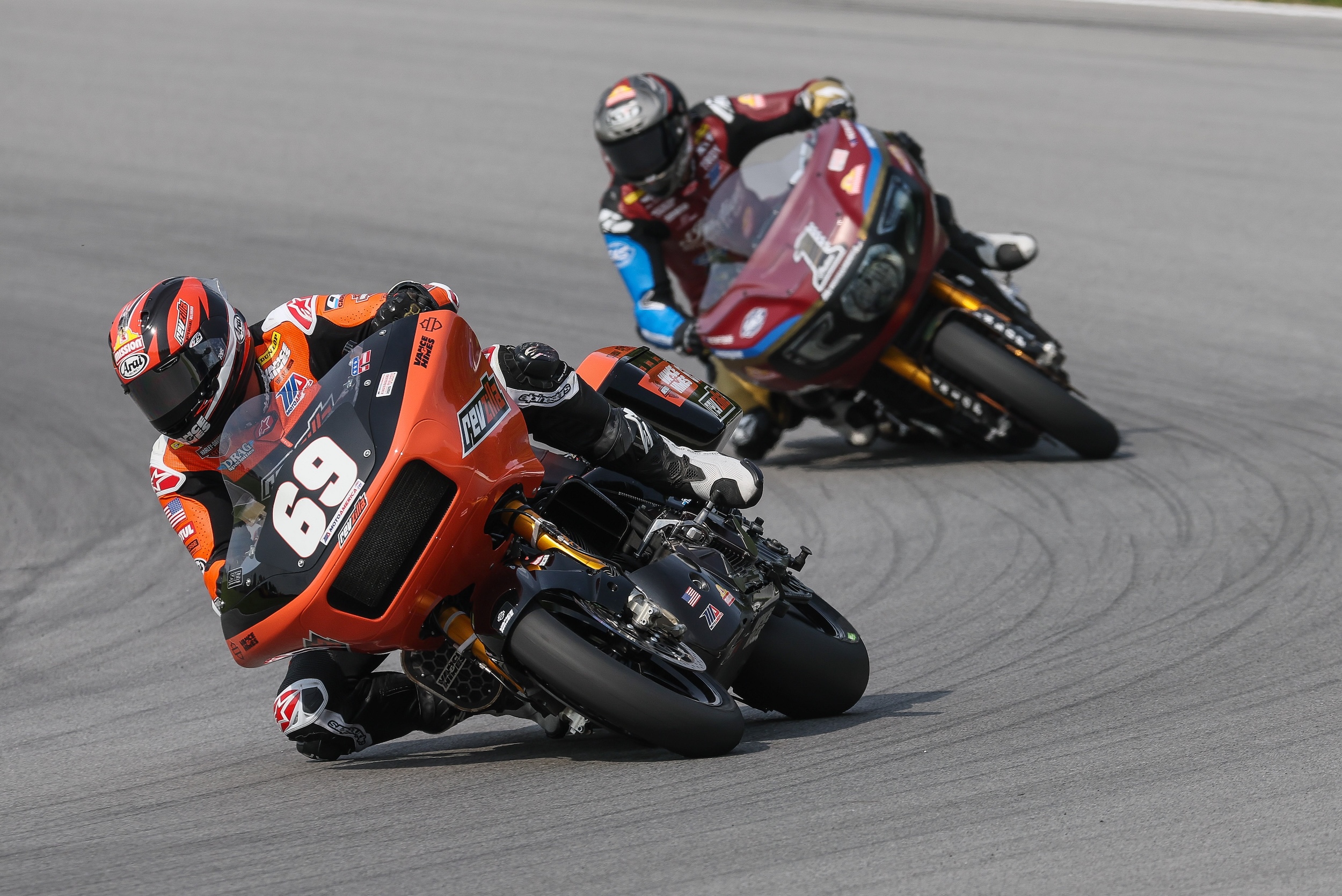 “After Laguna, I didn’t talk to anybody at Vance & Hines,” Gillim said. “I didn’t talk to anybody on the team. I didn’t talk to anybody for two and a half weeks. It was a long, long weekend. The Vance & Hines guys put in a ton of work, and we actually went testing last Saturday. It was supposed to be a two-day test, to kind of do some durability testing on the transmission, because that’s what our problem was at Laguna. And we found a whole other problem. We blew up both bikes in the span of an hour. So, they had to go back to the shop. They were there Sunday, Monday, Tuesday, Wednesday. I think they loaded up the last load on Thursday morning to drive up here. They had to go back and refigure every motor that we had in the shop and the bikes. So, it’s been a long year. This is my first podium of the season. After last year, being pretty competitive at times, we just have struggled and we’re finally finding our footing again. This one I wasn’t going to give in very easy. I tried swapping up some lines on the back straight. I could hear him kind of gassing it a little bit sooner than I was coming out into the next left. So, I was thinking maybe he was rolling around on the outside a little bit better. It’s hard. Luckily, I had the Superbike race to feel all that out. So, I kind of knew what the lines were like. I was getting tired there at the end. He started closing up on me. I started getting tighter and tighter and tighter. My left arm was cramping going through the Keyhole and everything. I was gripping it so tight. ‘Don’t give this up, man.’ It was just a good day, good weekend. Keep this going tomorrow.”