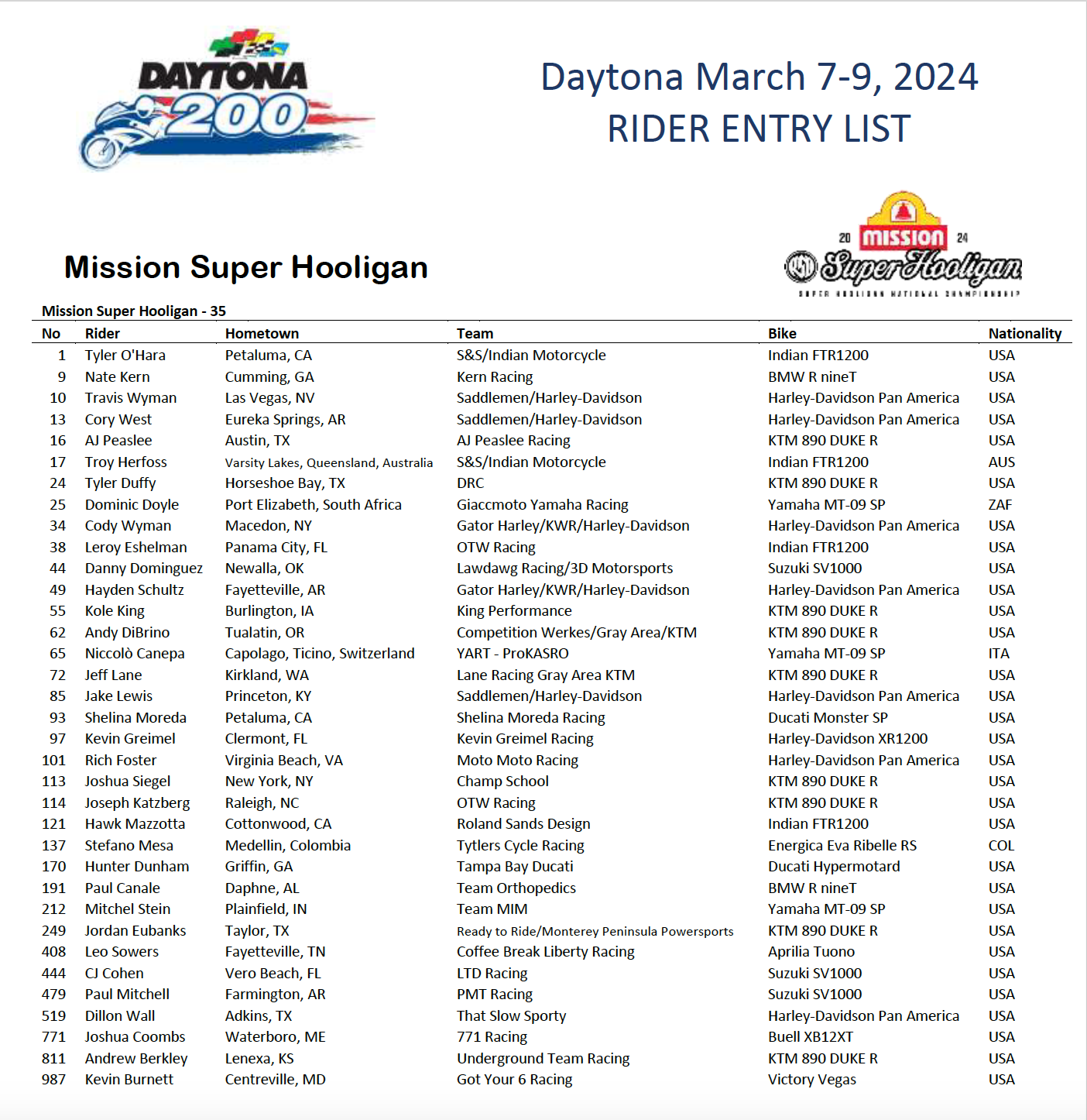 March 7 through 9 at Daytona International Speedway will be quite the spectacle. Not only is it the 82nd running of the Daytona 200 and the opening round of the 2024 Mission King Of The Baggers Championship, but it’s also round one of two more of MotoAmerica’s super-popular and uber-eclectic class championships. The two-cylinder middleweight maulers in the BellissiMoto Twins Cup Championship and the high-bar heroes of the Mission Super Hooligan National Championship will also be in action on the high banks at “The World Center of Racing.”