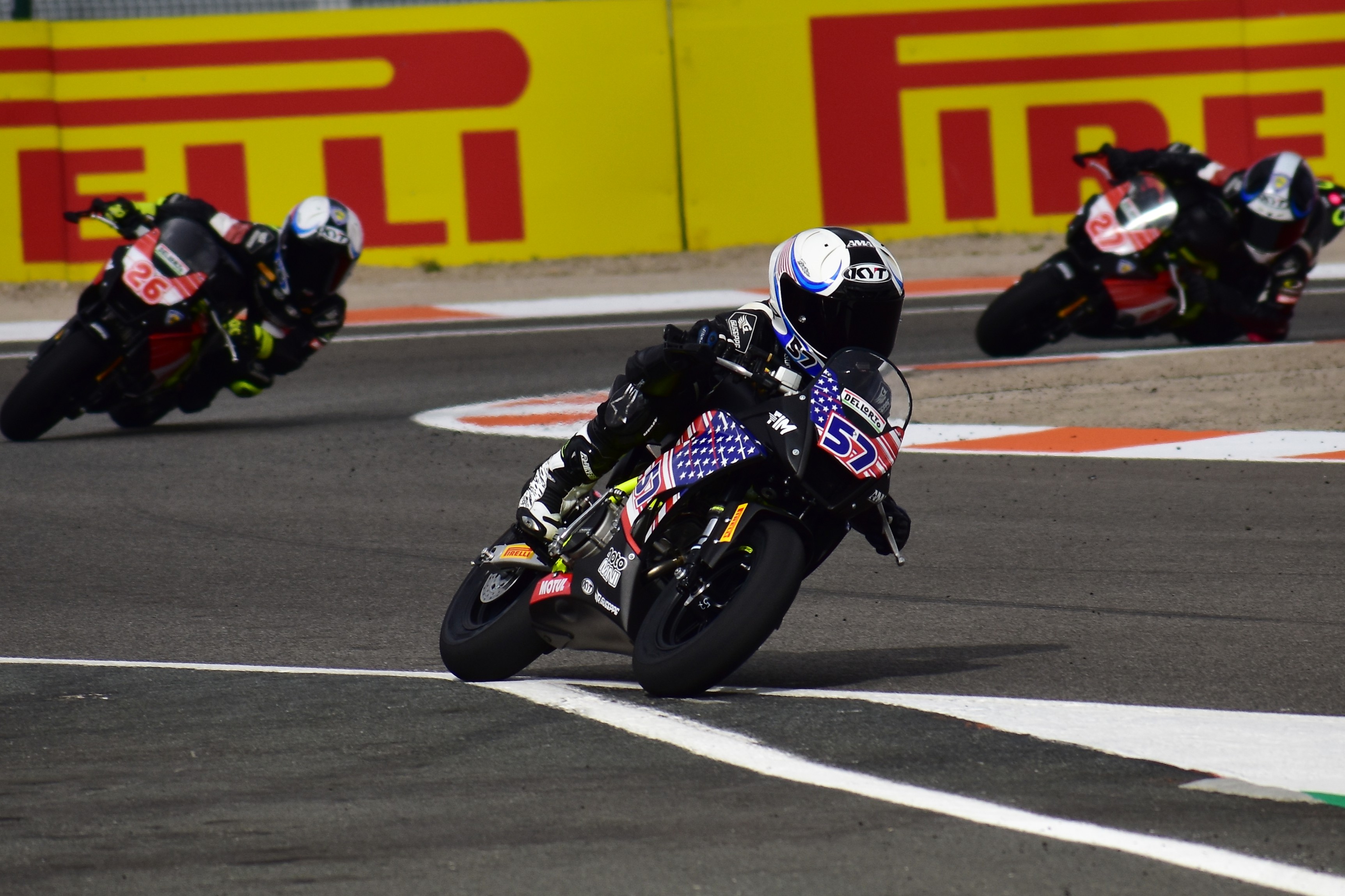 Zaal Farhand (57) overcame a crash in the first 160cc race of the day to finish 11th in the 2025 FIM MotoMini World Series Super Final race. Photo courtesy of Michael Gougis.