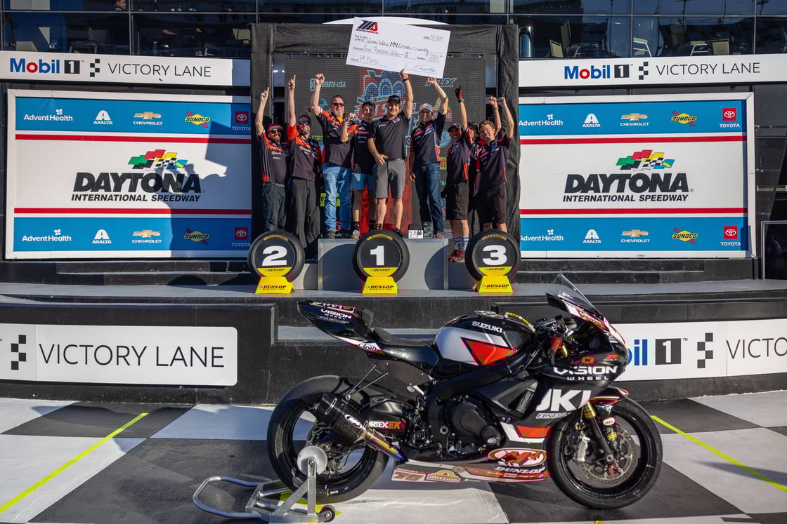 M4 ECSTAR Suzuki took top honors in the Pit Stop Challenge last year with rider Tyler Scott. Scott earned the pole position, too, and he went on to finish third in the 2025 DAYTONA 200 behind his teammate Richie Escalante. Photo by Brian J. Nelson.